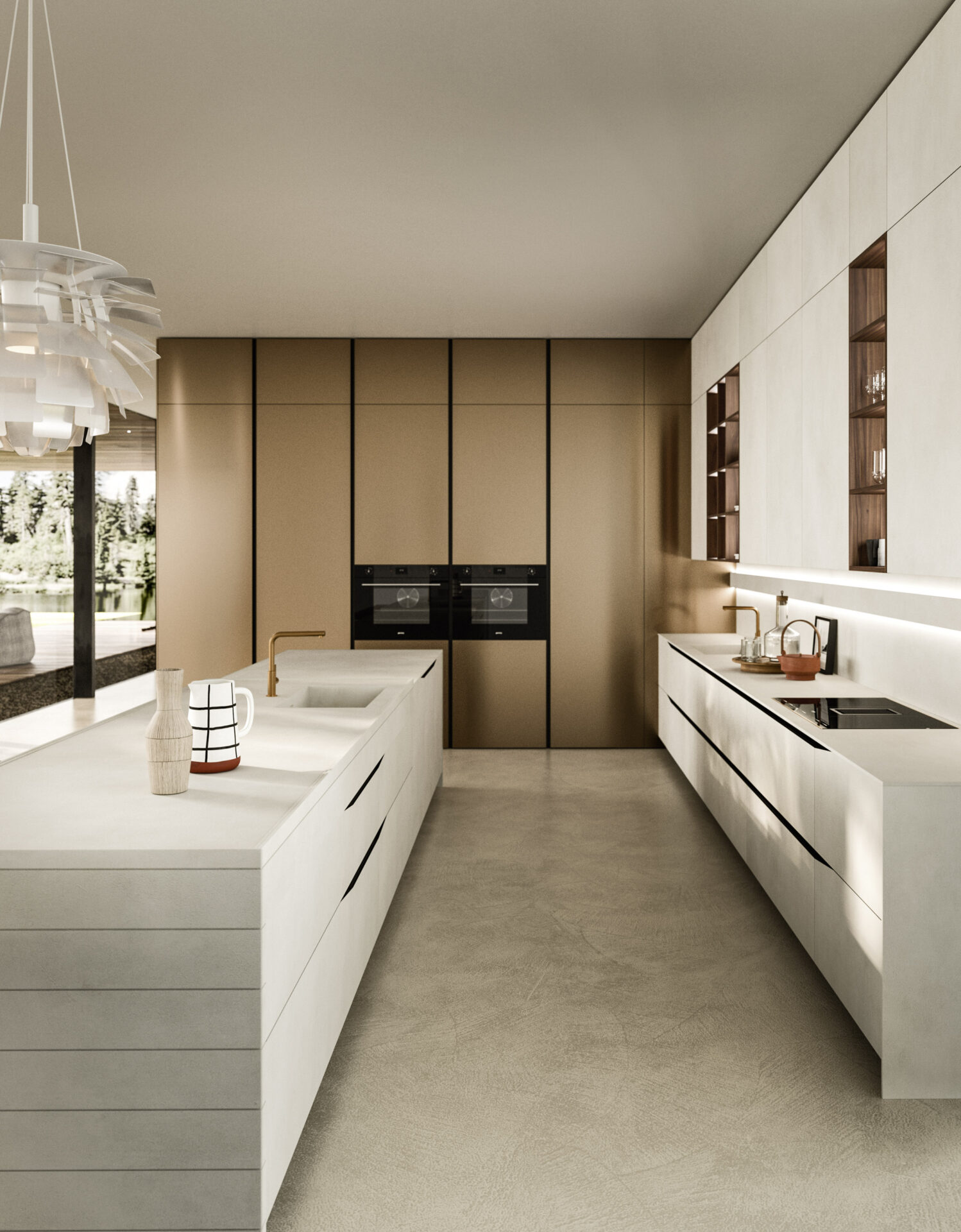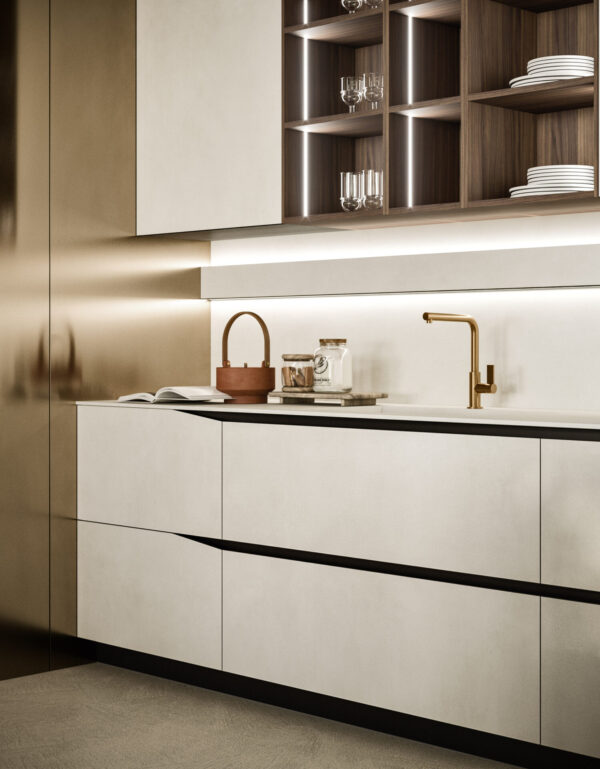 Ante Basi, Piani lavoro, Schienali e Ante Pensili Ceramica Calce bianco