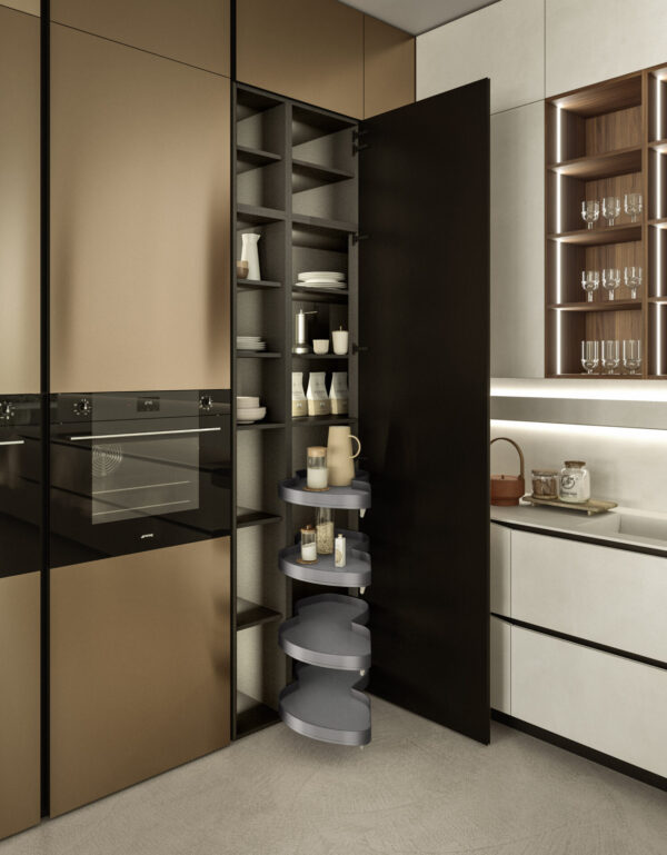 Elementi a giorno e Piano Tavolo impiallacciato Noce Americano