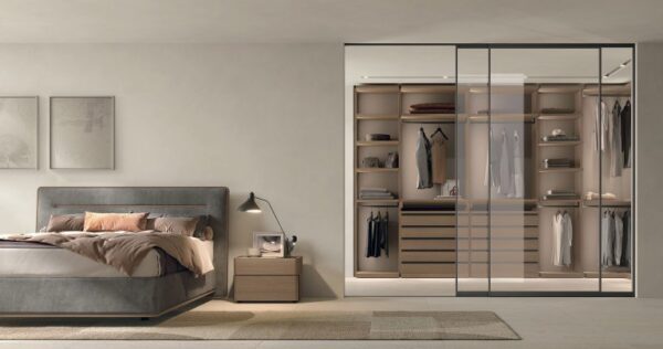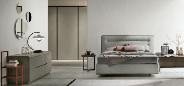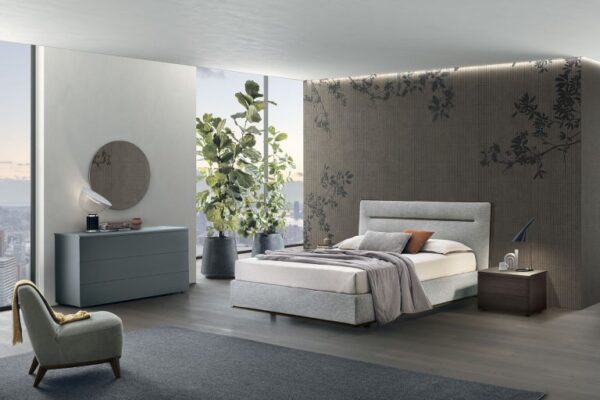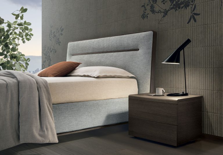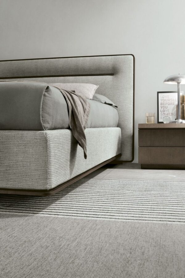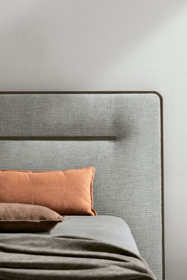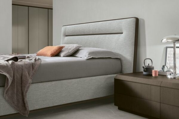 Letto rivestimento Tessuto Allure 24 e profilo legno Rovere Moka